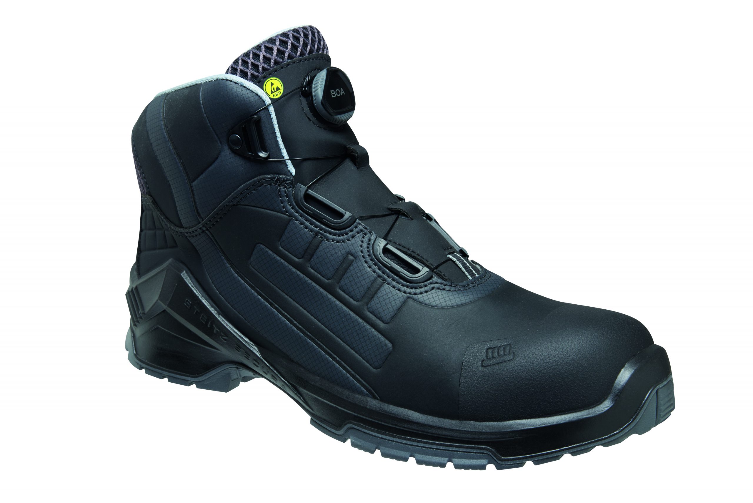 Ultra-lightweight and smooth microfibre, comfortable fit due to seamless shoe design, BOA® Fit System, with extra non-slip Perbunan outsole and textile puncture resistance, toe guard, dust guard tongue, cushioned collar, functional lining made of breathable textile and microfibre, removable comfort insole ERGO-SOFT ESD