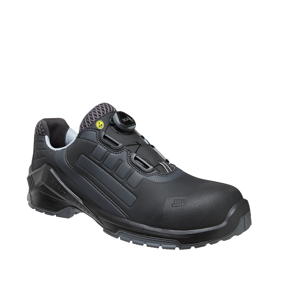 Ultraleichte und glatte Mikrofaser, angenehmes Tragegefühl durch nahtfreie Schuhkonstruktion, BOA® Fit System, Spitzenschutz, mit textilem Durchtrittschutz, geschlossene Lasche, Funktionsfutter aus atmungsaktivem Textil und Mikrofaser, austauschbare Komfort-Fußbetteinlage ERGO-SOFT ESD